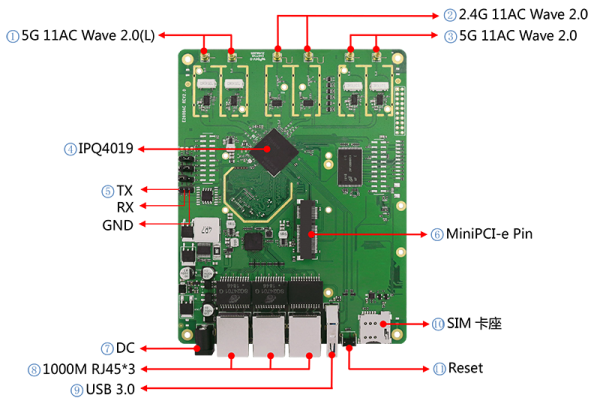 | Antenna | 2T2R 2.4 GHz 2T2R 5L/H GHz MMCX*6 |