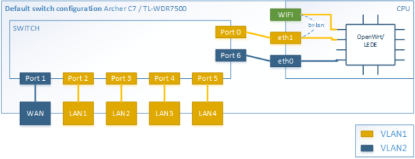 Note: It seems that Archer C5 has a slightly different structure. Switch has 6 ports and the only interface eth0 connects to it carrying both VLAN1 and VLAN2. See page TP-Link Archer C5 v4. v2 is similar. So the overall full duplex WAN throughput cannot exceed 1 Gbps.